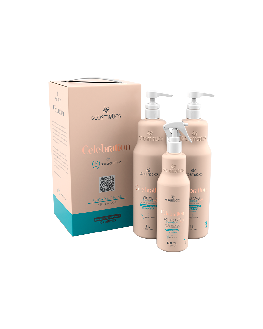 Transforme a saúde dos cabelos após descoloração, mechas e balayage com a Linha Celebration Ecosmetics, desenvolvida em parceria com a especialista Gisele Quintino. Ideal para cabelos fragilizados por química, nossa fórmula exclusiva atua em 3 passos para devolver elasticidade, resistência e estabilidade ao pH dos fios. Com a Linha Celebration, você recupera a vitalidade dos cabelos logo na primeira aplicação, ajuda a equilibrar o pH dos fios e restaura e nutre profundamente os cabelos danificados, garantindo que fiquem fortes, hidratados e revitalizados.