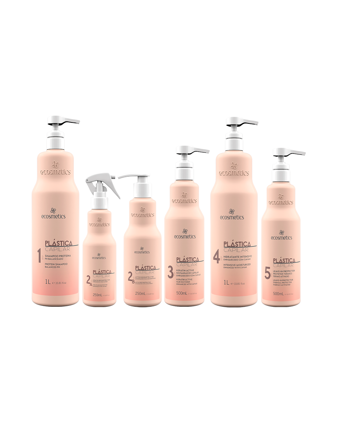 Linha de tratamento para cabelos danificados, sem alterar a estrutura dos fios. A Plástica Capilar age na reconstrução da fibra capilar, repondo o seu manto hidrolipídico, além de substituir as camadas desgastadas e eliminar os sinais da idade.