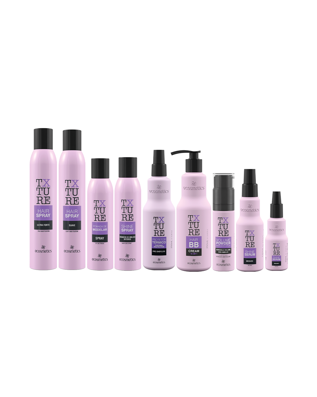 A linha TXture apresenta diversos produtos finalizadores, que promovem melhor penteabilidade, redução de frizz e volume indesejado, proteção térmica, modelagem em diferentes texturas e alto brilho